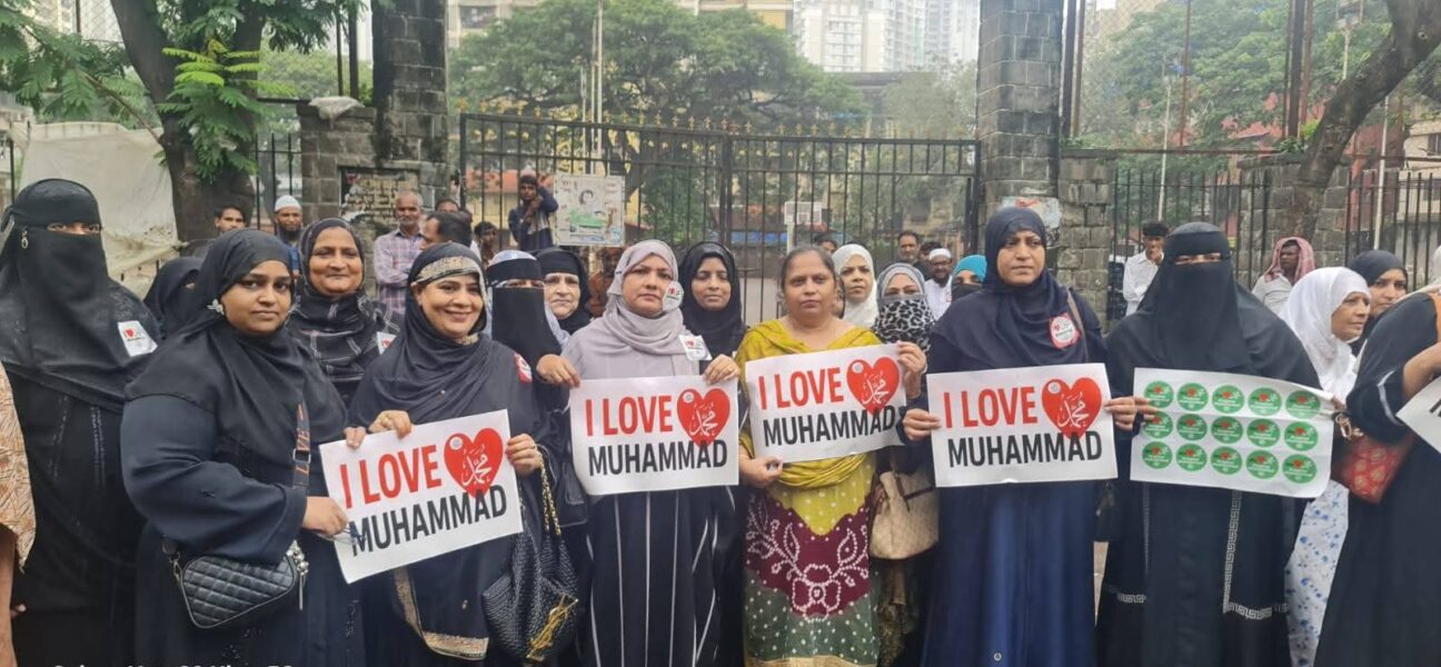 Mumbai: A peaceful protest was organized near Jhula Maidan today, marked by dignity and unity. The demonstration was held in honor of Prophet Muhammad, described as the mercy for all.