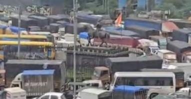 Mumbai : Kalyan-Dombivali witnessed massive traffic snarls as ongoing road repairs, Metro construction, and heavy rains created severe congestion across key routes. Unrepaired potholes before the monsoon and simultaneous Smart.