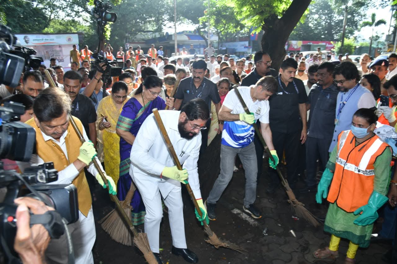 Mumbai: Under the state-wide campaign ‘Cleanliness is Service 2025’, Deputy Chief Minister and Guardian Minister of Mumbai City District Shri Eknath Shinde, along with Minister for Skill, Employment, Entrepreneurship and Innovation Shri Mangal Prabhat Lodha, led a major cleanliness drive at the Metro Cinema area of the Municipal Corporation’s A Ward on Thursday.